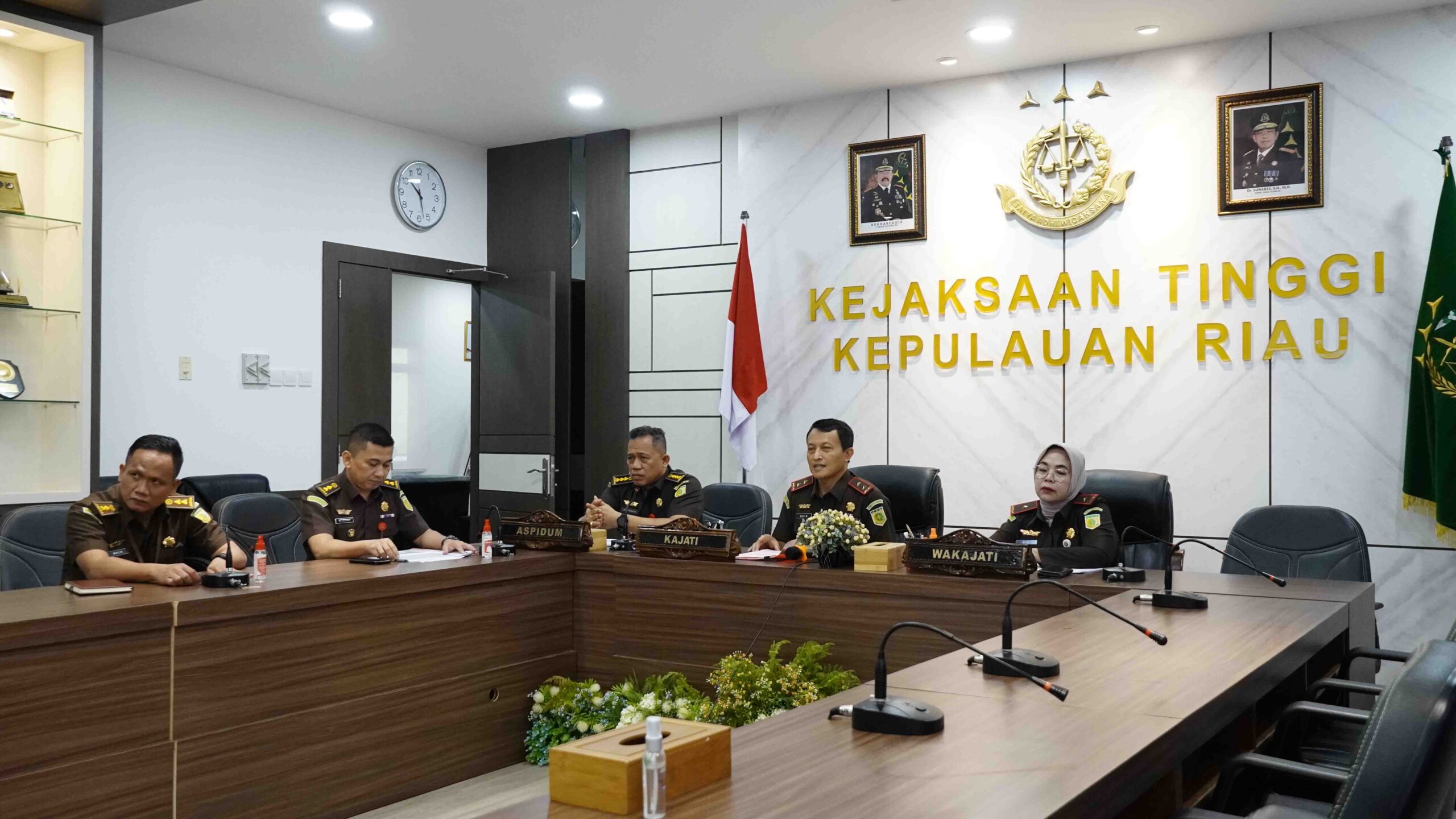 Tanjungpinang, Selasa tanggal 02 April 2024 Kajati Kepri Dr. Rudi Margono, SH., MHum., didampingi Wakajati Kepri Rini Hartatie, SH., MH., Aspidum Bayu Pramesti, SH., MH., Kasi Oharda, Kasi Teroris dan Lintas Negara Kejati Kepri, diikuti secara virtual oleh Kepala Cabang Kejaksaan Negeri Tarempa Niky Junismero, SH., MH., telah melaksanakan expose terhadap perkara pidana dihadapan jajaran Jaksa Agung Muda Tindak Pidana Umum Kejaksaan Agung RI yang diwakili oleh oleh Direktur Tindak Pidana Orang dan Harta Benda (OHARDA) pada Jaksa Agung Muda Tindak Pidana Umum Kejaksaan Agung RI Nanang Ibrahim Soleh, SH., MH.,melalui sarana virtual mengajukan 1 (satu) perkara pidana yang dimohonkan untuk diterapkan Penghentian Penuntutan berdasarkan Keadilan Restoratif.
